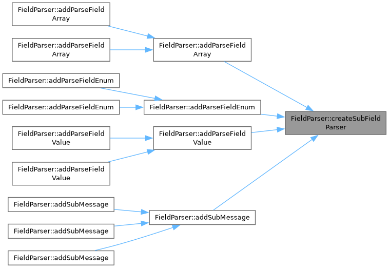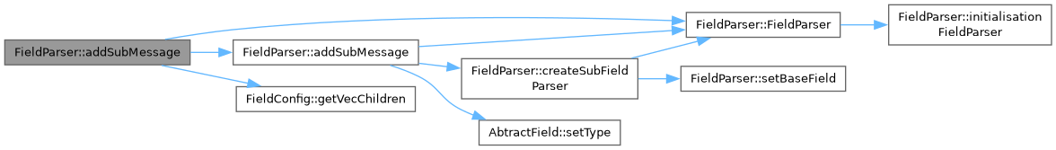 Here is the call graph for this function:| FieldParser * FieldParser::addSubMessage | ( | size_t | fieldId, |