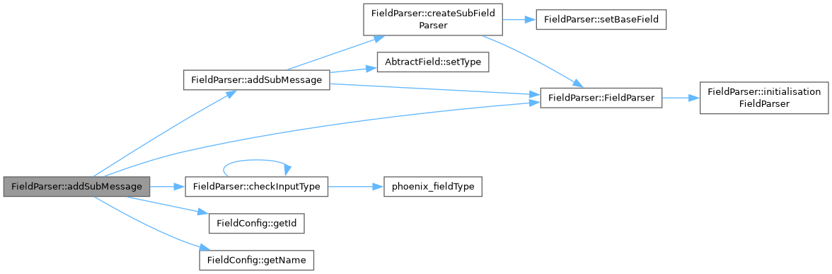 References addSubMessage(), checkInputType(), FieldParser(), FieldConfig::getId(), FieldConfig::getName(), and FieldType::SUBMESSAGE.